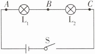 把两只灯泡$L_{1}$、$L_{2}$串联起来接到如图所示的电路中,分别把图中$A$、$B$、$C$各点断开,把____接入,闭合开关,测量流过的电流,看看它们之间有什么关系。