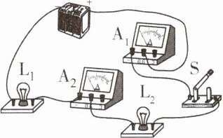 解:由图可知,两灯泡串联,电流表A₁和A₂均串联在电路中。