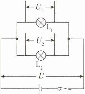 如图所示,在并联电路中,各支路两端的电压______,即$U= $______。