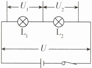 (1)用电压表分别测出$L_{1}和L_{2}两端的电压及串联电路总电压的值分别为U_{1}$、$U_{2}$、$U$,经过多次实验,将得到的数据记录在下表中。分析实验数据,可得到串联电路的电压特点是______(写出公式)。
