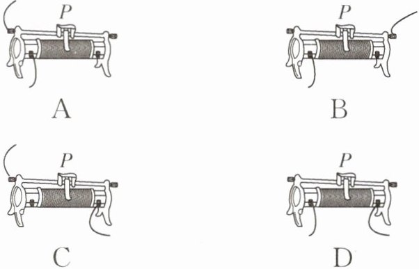 3. (内江中考)如图所示,给出了滑动变阻器四种接入电路的结构示意图。其中,当滑片P向左滑动时,使连入电路中的电阻变大的接法是( )