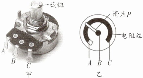 变式训练3 如图甲所示是一种实际使用的可调电阻,内部原理结构如图乙所示,通过转动旋钮带动滑片移动从而调节接入电路的阻值的大小。下列说法正确的是( )