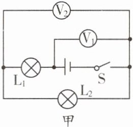 10. (新编)在如图甲所示的电路中,V₁、V₂ 都是有 0~3V 和 0~15V 两个量程的电压表。当闭合开关后,两个电压表的指针偏转均如图乙所示,则电灯 L₁、L₂ 两端的电压分别为 ( )