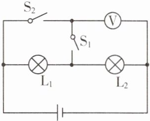 9. (新编)如图所示的电路中,电源电压保持不变。当开关 S₁ 闭合、S₂ 断开时,电压表的示数是 3V,当开关 S₁ 断开、S₂ 闭合时,电压表的示数是 5V,则 S₁、S₂ 都断开时,灯 L₁ 和 L₂ 两端的电压分别为 ( )