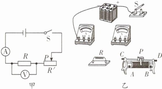 19. (新编)根据如图甲所示的电路图,用笔画线表示导线,完成图乙所示电路的连接。