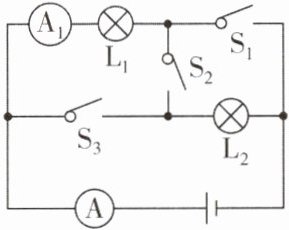 (1) 电源、电流表$A$、灯泡$L_1$、开关$S_3$串联;