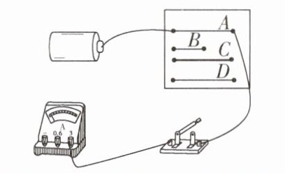 (1) 用导线将电流表“-”接线柱与导体一端连接,“0.6”接线柱与开关一端连接