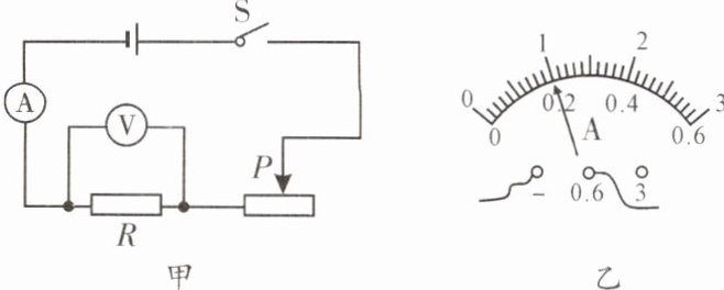 7. (新编)如图甲所示,闭合开关$S$后,电压表的示数为2V,电流表的示数如图乙所示,则通过电阻$R$的电流为______A,电阻$R$的阻值是______$\Omega$。