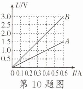 10. (新编)在某一温度下,连接在电路中的两段导体$A和B$中的电流与其两端电压的关系如图所示,由图中信息可知( )