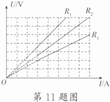 11. (内江中考)如图所示是利用数字化电压—电流传感器测量电阻后绘出的不同电阻的$U-I$图像。由图可知,下列判断正确的是( )