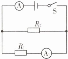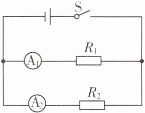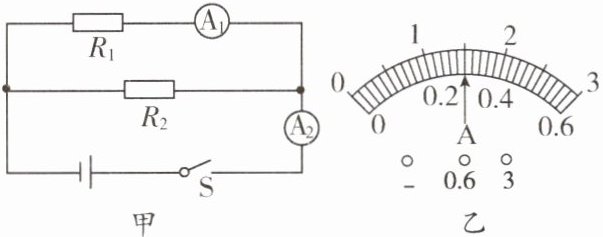 解:由图甲知,R₁与R₂并联,电流表A₂测干路电流,A₁测R₁支路电流。