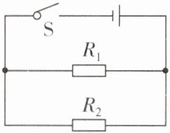 14. (新编)如图所示,电阻$R_{1}$的阻值为6Ω,电阻$R_{2}$的阻值为10Ω,电源电压为12V。闭合开关S后,电阻$R_{2}$两端的电压为____V,通过电阻$R_{1}$的电流为____A,通过干路的电流为____A。