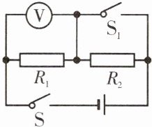(3)解:闭合S、断开S₁时,R₁与R₂串联,电压表测R₁两端电压U₁=8V。