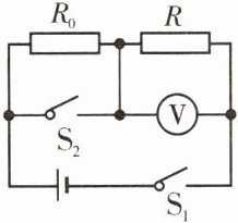 变式训练1 如图所示的电路,电源电压恒定,已知 $ R_0 = 40 \, \Omega $,$ R = 5 \, \Omega $。开关 $ S_1 $、$ S_2 $ 都闭合时,电压表的示数为 $ 9 \, \text{V} $;若只闭合开关 $ S_1 $ 时,电压表的示数为____ $ \text{V} $,通过 $ R $ 的电流为____ $ \text{A} $。