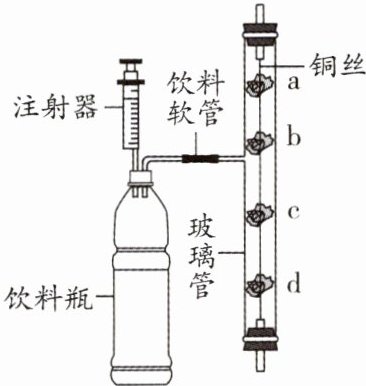 8. (2024·苏州月考)小美同学利用生活中的废弃材料来做家庭小实验,设计了如图所示的装置(a、d为用紫色石蕊溶液湿润的棉花,b、c为用紫色石蕊溶液浸过后做干燥处理的棉花,固定玻璃管的装置未画出)来探究二氧化碳的制取和性质,下列关于该实验装置的叙述不正确的是 (