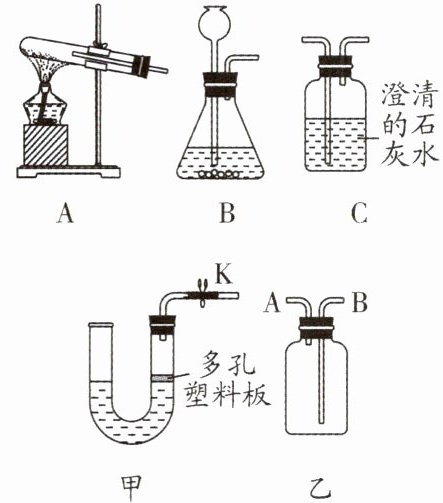 (3)实验室用装置甲制取$CO_{2}$,多孔塑料板上放的试剂是