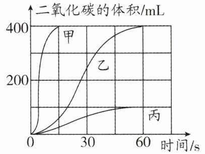 C 解析:大理石的主要成分是碳酸钙,碳酸钙与盐酸反应生成氯化钙、水和二氧化碳。实验Ⅲ中的大理石是粉末状的,反应速率最快,所以实验Ⅲ对应的变化曲线为甲,A正确;实验Ⅱ和Ⅲ中选择的酸都是7% HCl溶液,Ⅱ中是块状大理石,Ⅲ中是大理石粉末,实验Ⅱ和Ⅲ对比,说明影响反应速率的因素是固体的颗粒大小,B正确;实验Ⅰ和Ⅱ中所用酸的种类和浓度都不同,没有可比性,C错误;由题意和图像可知,实验Ⅱ和Ⅲ完全反应后,产生二氧化碳的质量是相等的,D正确。