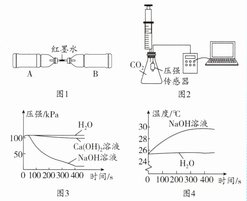 (3)由图3可以看到,相同时间内,滴入NaOH溶液后,锥形瓶内的压强减小得最快,证明氢氧化钠溶液可以更好地吸收二氧化碳。