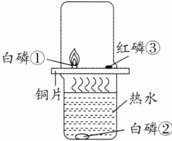 D 解析:①处白磷与氧气接触,温度达到了着火点,燃烧,②处白磷温度达到了着火点,但是隔绝氧气,不燃烧,说明燃烧需要与氧气接触,A错误;②处白磷温度达到了着火点,但是隔绝氧气,不燃烧,③处红磷与氧气接触,温度没有达到着火点,不燃烧,不能说明物质燃烧需要氧气,B错误;烧杯中热水可以提供热量,使温度达到白磷的着火点,使①处白磷燃烧,同时也可隔绝氧气,可通过对比得出燃烧需要与氧气接触,C错误;①处白磷与氧气接触,温度达到了着火点,燃烧,③处红磷与氧气接触,温度没有达到着火点,不燃烧,①③处温度相同,说明白磷的着火点比红磷低,D正确。