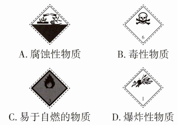 1. (2025·贵港期中)安全重于泰山,运输危险化学品的车辆上必须张贴警示标志。装运汽油或乙醇的运输车上所张贴的警示标志是 (