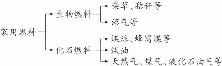 2. (2024·吕梁模拟)燃料的发展史是一个漫长的过程,家用燃料的变迁改善了人们的生活,提高了生活质量。下图为家用燃料分类图,下列分析正确的是 (