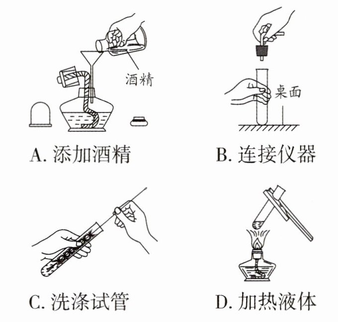 1. B 解析:连接仪器时,不能将试管竖立在桌面上然后用力将橡胶塞塞上,不能握住玻璃导管,B错误。