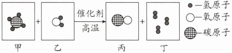 D 解析:根据微观示意图可知,一个甲物质分子是由一个碳原子和四个氢原子构成的,其化学式为$CH_{4}$,A正确;在化学反应里能改变其他物质的化学反应速率,而本身的质量和化学性质在反应前后都没有发生变化的物质叫作催化剂,催化剂可改变化学反应速率,B正确;根据微观示意图可知,乙是水,丙是一氧化碳,它们都由两种元素组成,其中一种元素是氧元素,都属于氧化物,C正确;根据微观示意图可知,甲物质是甲烷,一个甲烷分子是由一个碳原子和四个氢原子构成的,D错误。
