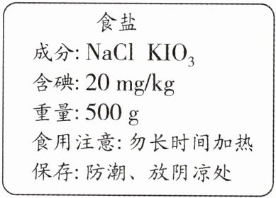 【查阅资料】成人每天食用食盐的质量通常为 6 g;某种加碘食盐的标签如图所示。