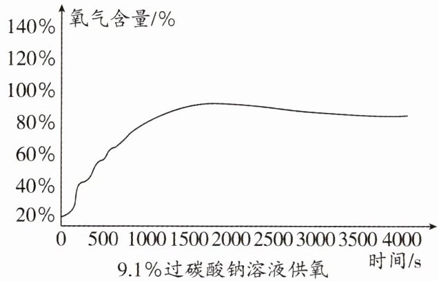 (2)小组中同学在100g质量分数为9.1%的过碳酸钠溶液与100g质量分数为3.0%的过氧化氢溶液中分别加入1.5g二氧化锰进行对比实验,利用氧气传感器测出9.1%的过碳酸钠溶液与3.0%的过氧化氢溶液分别产生氧气的曲线如下图。
