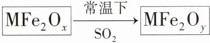 5. 新型纳米材料$MFe_2Oₓ(3<x<4)$中M表示+2价的金属元素,在反应中化合价不发生变化,常温下$,MFe_2Oₓ$能使工业废气中的$SO_2$转化为S,转化流程如图所示,已知$MFe_2Oᵧ$中Fe为+3价。下列说法正确的是 (