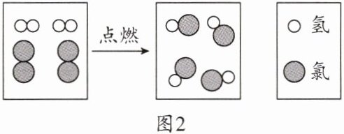 。(3)电解饱和NaCl溶液得到氯气和氢气$,H_2$在$Cl_2$中燃烧的微观粒子示意图如图2所示。