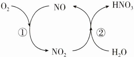 C.反应②中,参加反应的$NO_2$与生成的$HNO_3$含有等质量的氮元素
