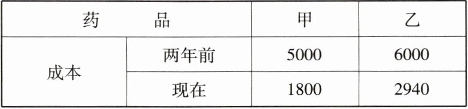 8. 两年前及现在甲、乙两种药品的生产成本(单位:元$/ \mathrm { t }$)如下表: