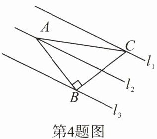 4. 如图,$△ABC$中,$∠ABC= 90^{\circ },AB= BC$,三角形的顶点在相互平行的三条直线$l_{1},l_{2},l_{3}$上,$l_{1},l_{2}$之间的距离为2,$l_{2},l_{3}$之间的距离为3,则AC长( )。