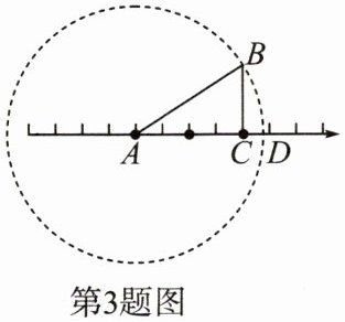 3. 如图,数轴上的点A,C分别表示-1和1,$BC⊥AC且BC= 1$,以A为圆心,AB为半径作弧交数轴于点D,则点D表示的数是( )。