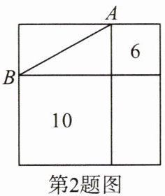 2. 如图所示,一个大正方形被两条线段分割成两个小正方形和两个小长方形。若两个小正方形的面积分别为10和6,则小长方形的对角线AB的长为( )。
