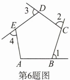 6. 如图,$∠1$,$∠2$,$∠3$,$∠4是五边形ABCDE的4$个外角,若$∠A= 100^{\circ }$,则$∠1+∠2+∠3+∠4= $______.