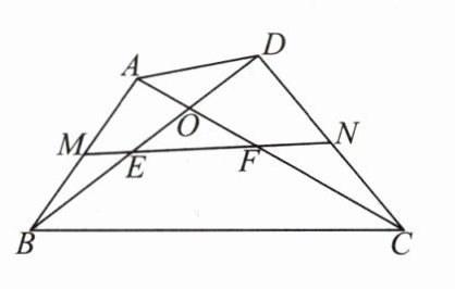 9. 如图,已知四边形$ABCD的对角线AC与BD相交于点O$,且$AC = BD$,$M$,$N分别是AB$,$CD$的中点,$MN分别交BD$,$AC于点E$,$F$。你能说出$OE与OF$的大小关系并加以证明吗?