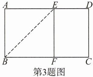 3. 如图,将长方形纸片ABCD折叠,使A点落BC上的F处,折痕为BE。若沿EF剪下,则折叠部分是一个正方形,其数学原理是( )。
