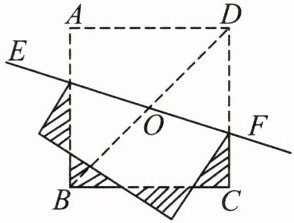5. 如图,已知正方形ABCD的对角线长为$2\sqrt{2}$,点O为正方形的对称中心,将正方形ABCD沿过点O的直线EF折叠,则图中阴影部分四个三角形周长的和为______。