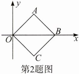 2. 如图,正方形OABC的顶点O,B的坐标分别是$(0,0)$,$(2,0)$,则顶点C的坐标是( )。