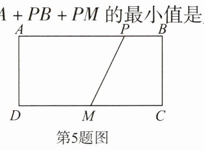 5. 如图,矩形 ABCD 中,点 M 是 CD 的中点,点 P 是 AB 上的一动点. 若 AD = 1,AB = 2,则 PA + PB + PM 的最小值是______.