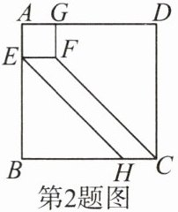 2. 如图,四边形 ABCD,AEFG 都是正方形,点 E,G 分别在 AB,AD 上,连接 FC,过点 E 作 EH//FC 交 BC 于点 H. 若 AB = 4,AE = 1,则 BH 的长为( ).