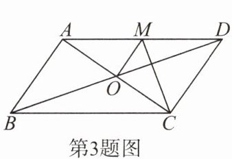 3. 如图,平行四边形 ABCD 的对角线相交于点 O,且 AD ≠ CD,过点 O 作 OM ⊥ AC,交 AD 于点 M. 如果△CDM 的周长为 5,那么平行四边形 ABCD 的周长是( ).