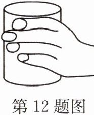 12. 如图所示,用手握住装水的杯子静止在空中,杯子