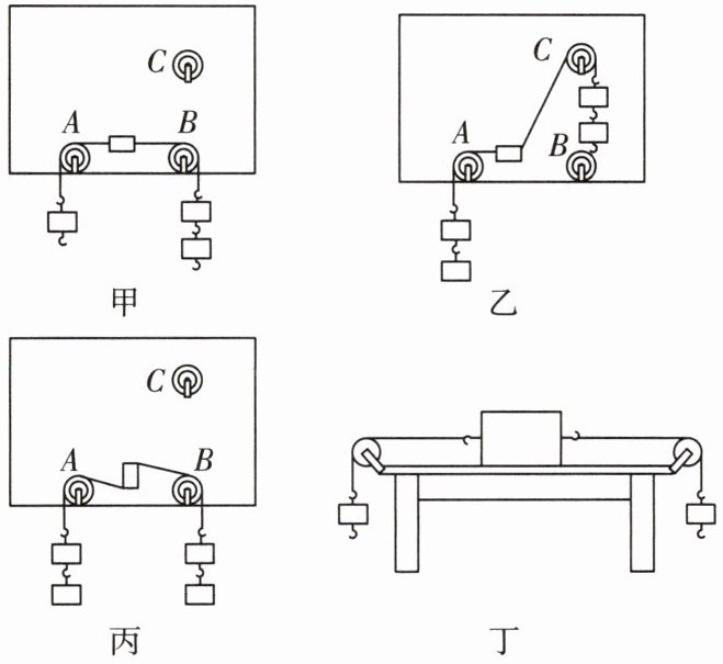 不相等,则这两个力不平衡。(2)按住塑料块,把跨过B轮的细线移到C轮上,在两线端挂上相同质量的钩码,松手后塑料块由静止开始转动,如图乙所示。按住塑料块,把跨过C轮的细线移到B轮上,把塑料块转过90°,松手后塑料块由静止开始转动,如图丙所示。由此表明,作用在同一物体上的两个力,如果仅仅大小相等,方向成某一角度或方向相反但
