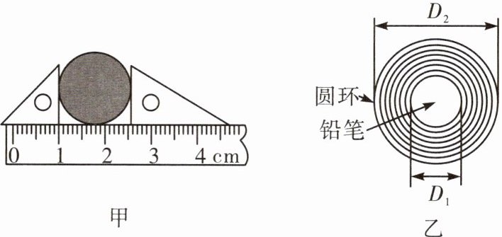 cm。(2)为了测出一条厚薄均匀的纸带的厚度,他把纸带环绕在圆柱形铅笔上,直到恰好能套进一个圆环内,如图乙所示,纸带环绕了n圈,则纸带厚度的表达式是