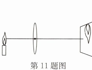 13. 用焦距为10 cm的凸透镜探究成像规律,如图所示,烛焰在光屏上成清晰的像,则光屏到凸透镜的距离可能是