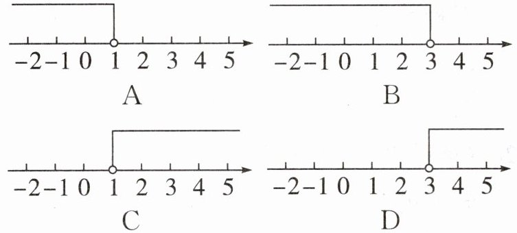 2. 下列在数轴上表示不等式$\frac {x-1}{2}<0$的解集,正确的是 (