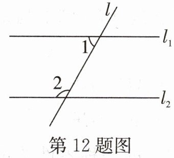 12. (随州中考)如图,直线$l_1//l_2,$直线l与$l_1,l_2$相交,若图中∠1= 60°,则∠2为 (